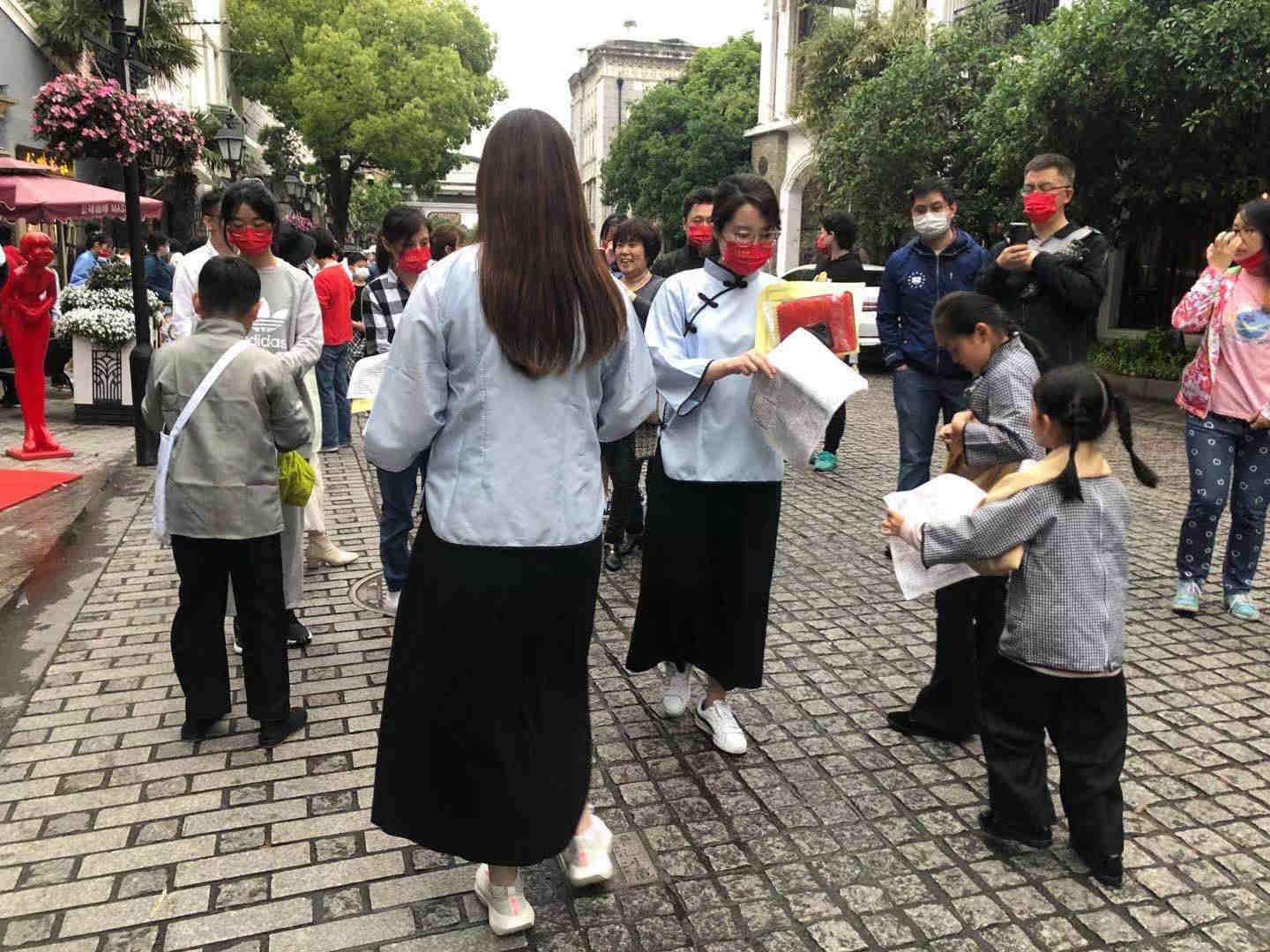演員們穿著民國服裝,通過充滿張力的表演,將歷史的場景重現,學生們當街演講,在鐘樓發傳單,巡捕房警察阻止,眾人掩護魯迅離開……《青春為祭》在多倫路文化名人街實地布局戲劇場景,利用左聯會址紀念館、景云里、公啡咖啡館、老電影咖啡館等紅色資源,讓觀眾擁有高度沉浸式的體驗,仿佛置身于當年竇樂安路上,零距離感悟學習革命志士堅定的理想信念。