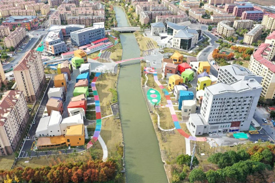 因造型獨特、建筑外立面色彩斑斕,在臨港新片區主城區內,位于夏漣河沿河兩岸的摩洛哥風格街區被稱為彩屋街,成為“網紅”打卡地。