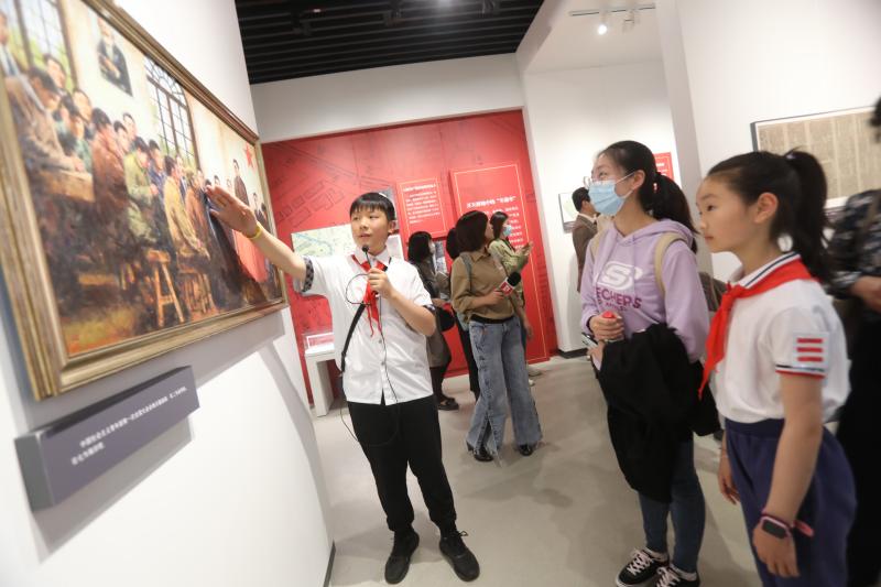 革命烈士后代、婁山中學七年級學生俞浩然,向全體少先隊員發出“黨的故事我來講”爭當紅領巾講解員的倡議。俞浩然說:“我的太爺爺是革命烈士俞秀松,他是中國共產黨發起組成員和中國社會主義青年團的創始人之一。在我很小的時候,就常聽爺爺給我講太爺爺的故事,太爺爺為革命走遍祖國的東西南北,‘做一個利國利民的東西南北人’是太爺爺一生為革命奮斗獻身的真實寫照!碑斢岷迫坏弥谏虾J星嗌倌昊顒又行慕⒘艘粋紅色印記展示館,館內有很多關于俞秀松青少年、青年時期的故事時,他非常激動,特別想把這些故事講給小伙伴聽,也希望小伙伴和他一起講述紅色革命故事。俞浩然向小伙伴們發出倡議:做好紅色基因的堅定傳承者、紅色故事的精彩講述者,積極加入紅色印記展示館的小小講解員隊伍,一起攜手傳承紅色基因,講好紅色歷史,弘揚紅色精神。
