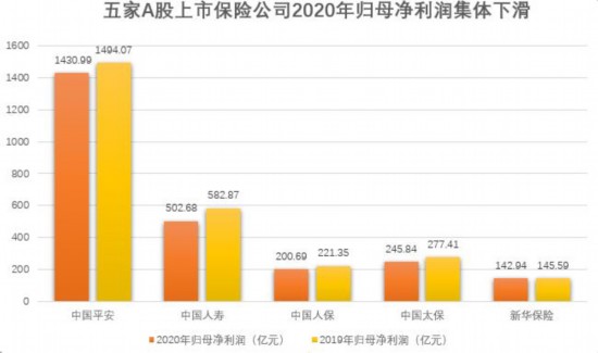 2020年,保險業受到了多維沖擊。一方面來自于行業各項改革帶來的業務轉型壓力,另一方面受疫情影響,公司正常展業受阻;诖,這一年度的五家A股上市保險公司業績略顯單薄,凈利潤集體下滑。