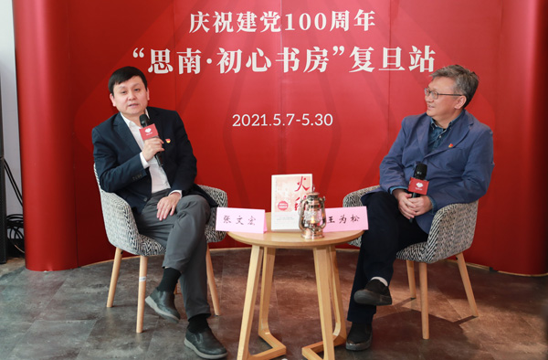 隨后,張文宏以復旦站首任“輪值店長”的身份,與上海世紀出版集團總編輯,上海人民出版社黨委書記、社長王為松一起,向復旦師生薦讀黨史書籍《火種:尋找中國復興之路》。