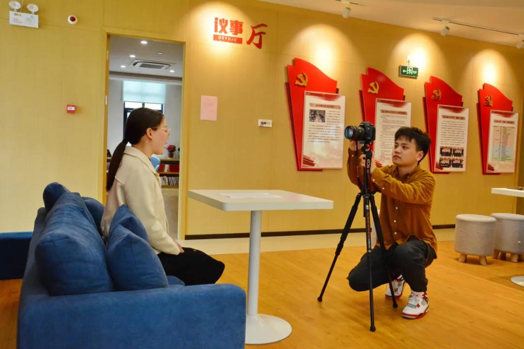 “百年歷程,娓娓道來,今天我們要講的內容是五卅運動……”在吳涇鎮社區黨群服務中心,華東師范大學的研一學生石黃面對鏡頭,講起了黨史故事。