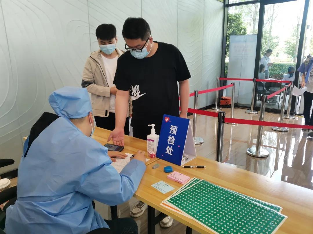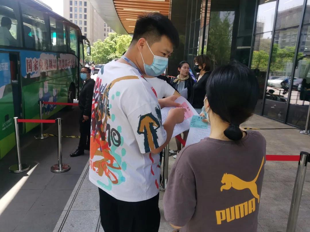 “北生,第二劑次,身體沒有什么不舒服對吧,請在這里簽名!敝形鐣r段,停在新城控股集團總部樓門口的流動疫苗接種車也迎來了又一波小高峰。沈先生走進設置在樓內大廳的預檢處,拿到了接種牌,填寫好《知情同意書》,順著蛇形通道走到流動接種車前排隊接種。