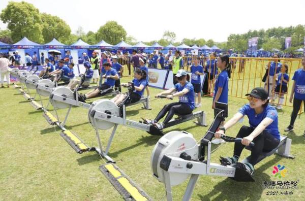賽道之外,家庭馬拉松組委會為參賽家庭準備了五大主題嘉年華:“科技家馬”以科技體育為所有參賽家庭提供近距離接觸科技魅力的機會;“文化家馬”特別設置了黨史問答活動,獻禮黨的百年華誕;“快樂家馬”在現場設置了陸上劃船器家庭大賽,給所有參賽家庭帶來更多歡樂;“溫馨家馬”則為孩子準備了“獻給母親的花朵”;還有保留節目“健康家馬”,由寶山衛生健康委的抗疫天使為大家的健康保駕護航。