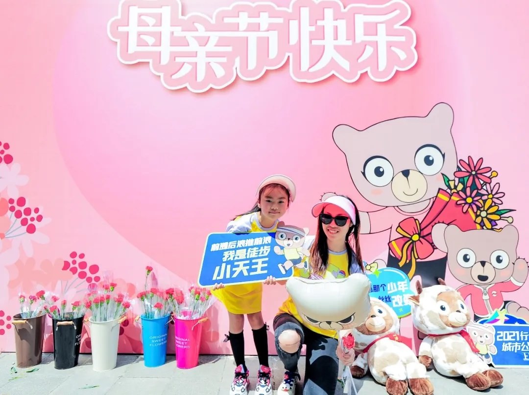 親子組全程約6.8公里,時值母親節,時尚辣媽們帶著快樂萌寶,共同收獲了一段快樂、健康、豐盛、進步的徒步之旅。本次比賽也吸引了各路IP“大神”再次集結,一位位“撕漫男”打破次元壁,來到徒步參賽者們的身邊。
