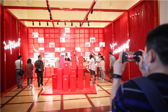 今年中國品牌日上海展區的主題為“美好申活”,走近上海展區,矗立著一座特別的裝置,以鮮艷的紅色打底,外形如同城市中鱗次櫛比的高樓大廈,上書不同字體的“上!弊謽,這是由上海數十家經典品牌、100件具有紅色歷史意義的展品組成“鎮館之寶”——《下一個100:我們繼續輝煌》。