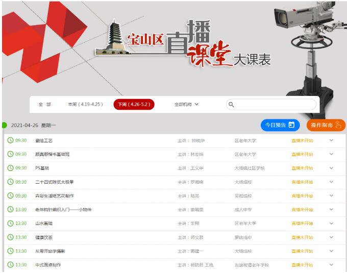 2021年春季重新推出54門線上直播課程,于2021年3月15日開播,直播課程涵蓋了社區教育課程:社會科學、健康教育、文化素養、藝術修養、實用技能、體育健身六大系列。