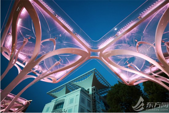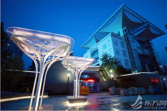 在人民公園入口,集成了三維曲面鍛造、五軸激光雕刻以及高分子材料預制等新技術、新材料、新工藝的玉蘭花廊。