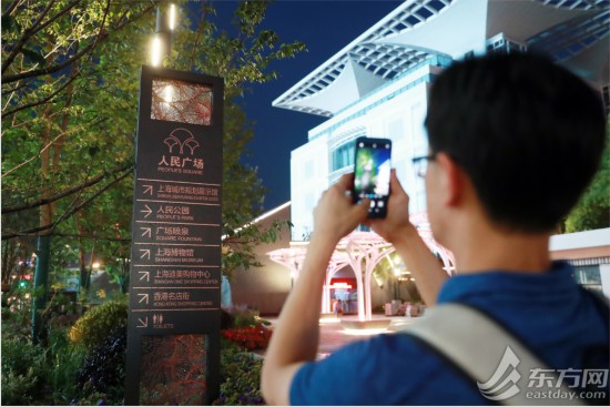 路牌雕刻著銀杏葉,向市民游客指明上海博物館、人民公園、上海城市規劃展示館等景點的方向。