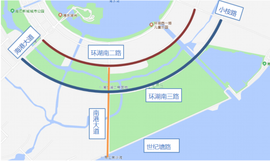 2、環湖南三路(海港大道至小桉路)(圖示藍色)