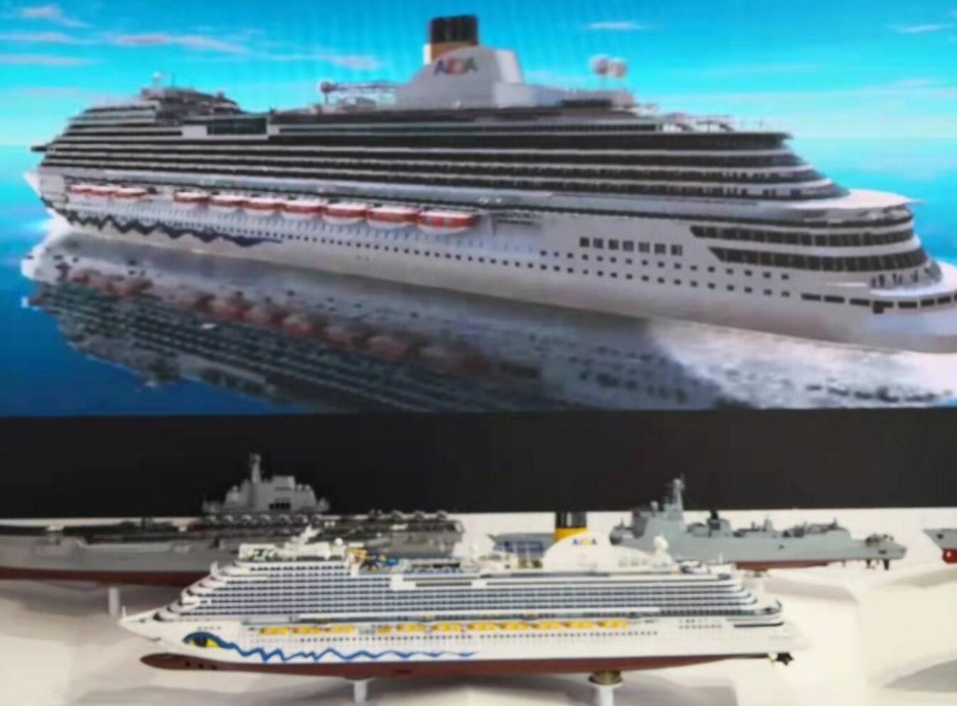 中國船舶自主制造的游輪也很吸睛。汪洋大海之上,一艘游輪緩緩駛來,而在大屏幕之下,就放著它的模型。這是我國首艘自主建造的大型郵輪,總噸位約13.55萬,總長323.6米,型寬37.2米,最多可容納乘客5246人,擁有客房2125間。從模型上看,在船舶的頂部,設有水上游樂場、游泳池等設施,儼然如一座城市。2019年10月18日,這艘船在中國船舶工業集團有限公司所屬上海外高橋造船有限公司開工點火鋼板切割,全面進入實質性建造階段!坝屋喗ㄔ毂蓉洿蟾,綜合性需求多,難度大,中國能建造游輪意味著中國的船舶工業將提升到一個新層次!惫ぷ魅藛T稱。