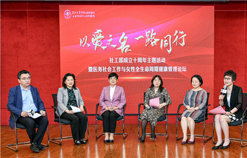 與此同時,“醫務社會工作與女性生命周期健康管理”論壇舉行。醫院黨委書記華克勤與中國社會工作學會副會長、復旦大學文科科研處處長顧東輝教授擔任論壇主持,邀請了上海市民政局職業社會工作和志愿服務處處長張靜、上海市衛生健康委文明辦副主任、新聞宣傳處二級調研員俞軍、中國醫院協會醫院社會工作暨志愿服務工作委員會主任委員、上海兒童醫學中心黨委書記季慶英,復旦大學生殖與發育研究院院長、醫院婦產科遺傳中心主任、中國科學院院士黃荷鳳,圍繞醫務社工如何參與女性全生命周期的健康及家庭賦能展開專業的討論分享。專家們針對醫療領域社會工作的發展,以及在未來社會工作如何整合社會資源、提供“生理—心理—社會”全維度支持服務各抒己見,分別結合各自的專業領域展開了討論。