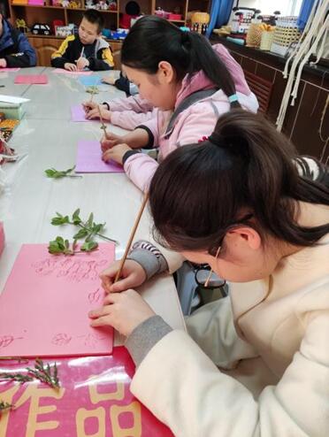 太原市盲童學校的孩子們通過觸摸在畫樹葉