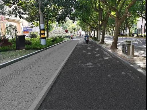 人行道改造:按照海綿城市的建設理念對工程范圍內兩側人行道翻建為透水人行道結構,原有人行道板磚替換為鋼渣透水磚。