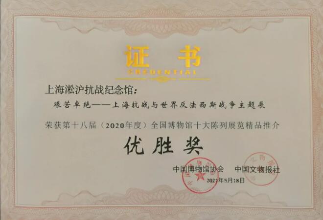在1534.1萬人次的關注下,淞滬館《艱苦卓絕——上?箲鹋c世界反法西斯戰爭》主題展喜提“十大陳列展覽精品”優勝獎!