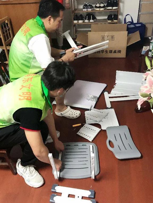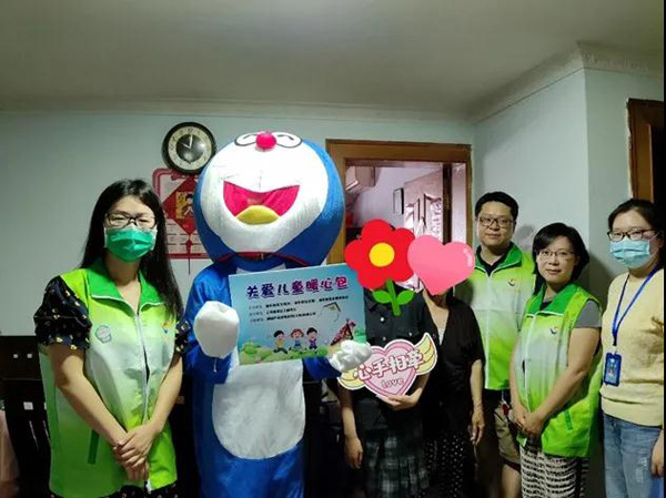 本次活動共招募了來自各個街鎮的近百名志愿者,平時他們身處各行各業,有的是政府部門人員、專業社工,有的是學生、奶爸奶媽,有的是企事業單位員工、鄰家媽媽、外企員工等。但在活動中都化身為“物資小當家”“守護天使”“竹蜻蜓駕駛員”“微笑記錄員”以及“哆啦A夢”,組成“哆啦A夢”志愿者團隊,為孩子們送去了希望與關懷。本次活動禮包中有37張課桌,都會由志愿者們親自上門安裝。