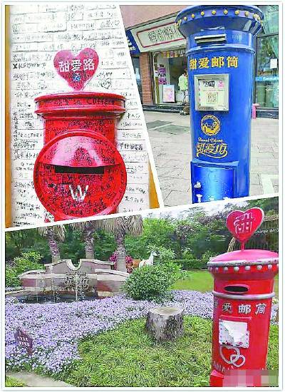 孫先生知道,愛情主題郵筒也是甜愛路有名的地標之一,但不止這一個,隔壁的甜愛咖啡館門口和附近的甜愛坊都有。