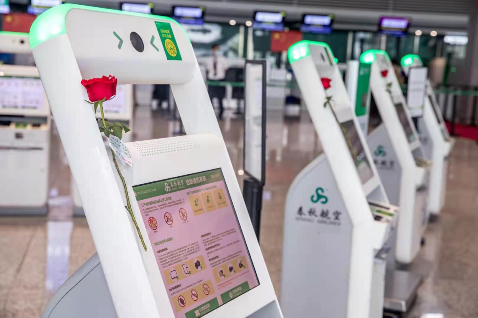 5月20日,因為“520”諧音“我愛你”,成為了當下很多情侶必過的浪漫節日。今天13點14分,在春秋航空虹橋機場值機區域出現了一朵朵綻放的紅色玫瑰花,有些被擺放在自助值機設備旁,有些被擺放在值機柜臺上,在每朵玫瑰花瓣下還附上了一張寫有浪漫祝福語的小紙條。據了解,這是春秋航空為迎接520精心策劃的“‘玫’你不行”特別行動。