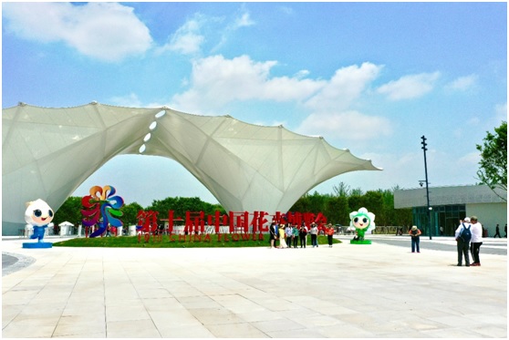 第十屆中國花卉博覽會園區由北園和南園構成,總面積589公頃?傮w規劃布局為“一心、一軸、六館、六園”,展現出了“盛世花開、耀我中華”的大氣格局!耙恍摹睘椤皦艋▓@”核心區,以牡丹花為構圖元素,通過花海、花徑、花溪、花谷,整體營造出了“牡丹綻放,喜迎盛世”的花博園區優美景觀;“一軸”為花博軸,連通南園、迎賓廣場、世紀館、復興廣場、復興館和東平小鎮,沿線布置花壇、花廊、花橋、花柱;“六館”為復興館、世紀館、竹藤館、百花館、花藝館和花棲堂。園區內還建造了玉蘭、梅花、菊花、蘭花、荷花和竹園六大展園,重點展示中國傳統名貴花卉,弘揚中國花文化。