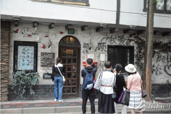 一些人走到這面墻前專門拍“顧佳怡我愛你”,有個女孩告訴記者,經常在微博上看到打卡圖,還有許多網友評論說,“顧佳怡你們在一起了嗎”,所以希望來這里打卡的他們也能“修成正果”。