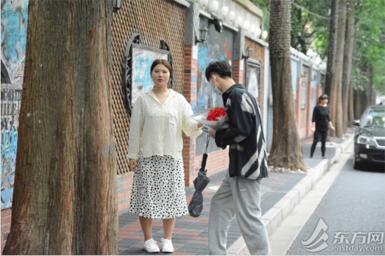為女朋友的照片添一抹顏色,男孩還去買了玫瑰花。