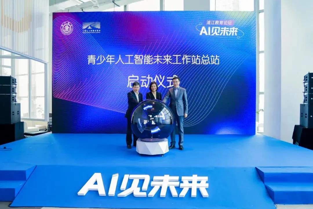 當天,上海人工智能實驗室主任湯曉鷗,上海市教委副主任毛麗娟,上海交通大學常務副校長、中國科學院院士丁奎嶺共同點亮并發布人工智能未來工作站“百校千師”計劃。