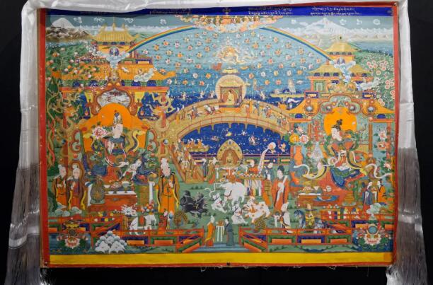 在展覽現場,觀眾可欣賞到次仁旺加、西落、平措扎西、次旦旺拉等40余位日喀則唐卡畫師的近百幅精品畫作,涵蓋勉唐、勉薩、齊烏崗等眾多唐卡流派。