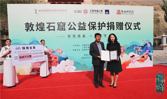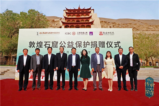 5月21日,工銀安盛人壽在敦煌莫高窟舉行“歲月傳承 一心堅守”公益捐贈儀式,向中國敦煌石窟保護研究基金會捐款50萬元,用于保護莫高窟第328號唐代石窟,共同守護傳承中華文化瑰寶,弘揚優秀歷史文化。工銀安盛人壽總裁吳茜、敦煌研究院副院長張先堂、中國敦煌石窟保護研究基金會理事長楊秀清、秘書長宋真,中國工商銀行甘肅分行行長助理王臣、酒泉分行行長張永慶等領導和各界嘉賓出席捐贈儀式。