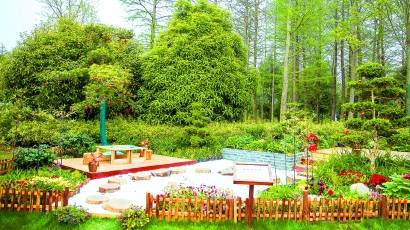 市民花園位于花博南園的杉林細雨景觀帶。來自滬、蘇、浙、皖的30組參賽選手通過前期報名進入決賽。從設計到施工布展,再到展期維護,全都由市民親自完成,參賽選手們利用花卉和植物,發揮創意和想象,打造了一個個“夢想花園”。