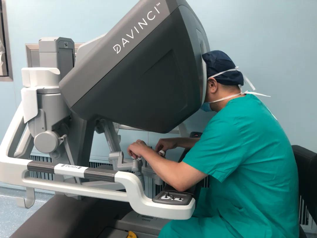 而它的一舉一動,都在主刀醫生鄒奇飛的操控之下。離手術臺一米遠的地方,鄒奇飛正通過操作平臺操控著這臺第四代達芬奇手術機器人。手術耗時約2個小時,這也是嘉定首例由第四代達芬奇手術機器人輔助實施的真正意義上的智能化手術。