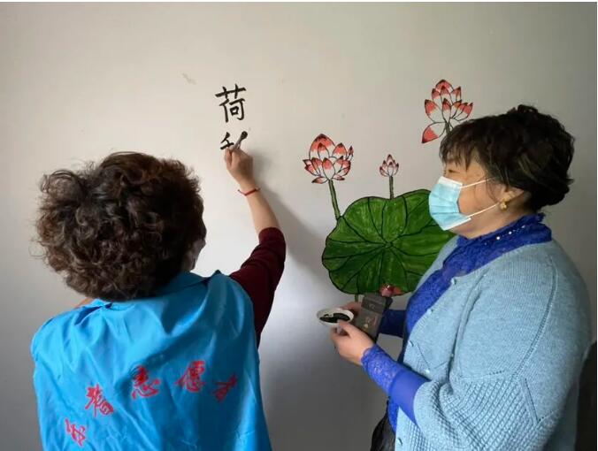 居民趙阿姨退休后就一直學習畫畫,這次得知要打造文化樓道,便第一時間報名,積極地參與進來。