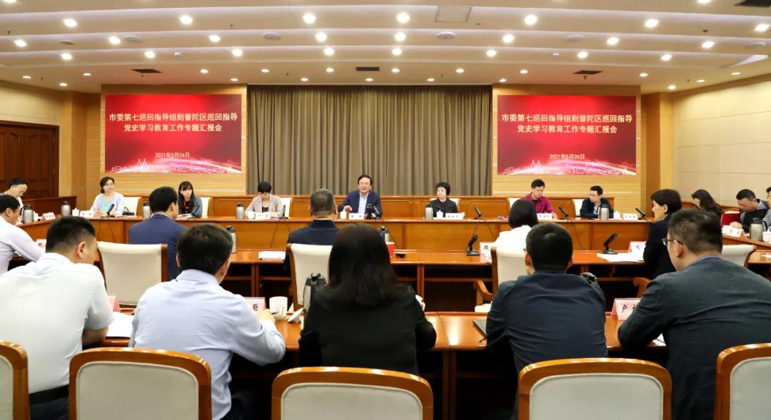 5月26日,市委黨史學習教育第七巡回指導組到普陀區開展指導工作。上午,普陀區召開黨史學習教育工作專題匯報會,市委第七巡回指導組組長戴健和全體組員到會指導。區委書記、區委黨史學習教育領導小組組長曹立強匯報區黨史學習教育開展情況。