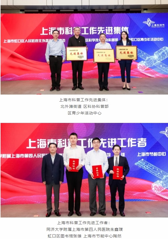 科技創新、科學普及是實現創新發展的兩翼。除了在科技創新上有著突破性成就,我區的科普工作同樣不容小覷。在活動現場,由上海市科委二級巡視員過浩敏和虹口區副區長鄭宏分別為虹口區獲得上海市科普工作先進集體和先進工作者授牌和頒獎。此番活動表彰先進,弘揚了科普正氣,振奮了科普精神,極大鼓勵廣大科普工作者進一步做好新時代科學技術普及工作。