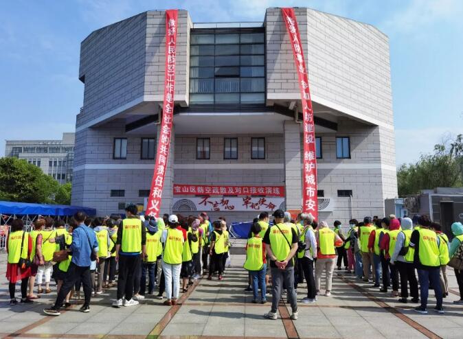 5月25日,寶山區民防辦舉行防空襲臨戰疏散及對口接收演練。演練分為人員集中啟運、人員接收安置、組織人員返回三部分進行。