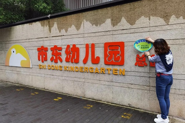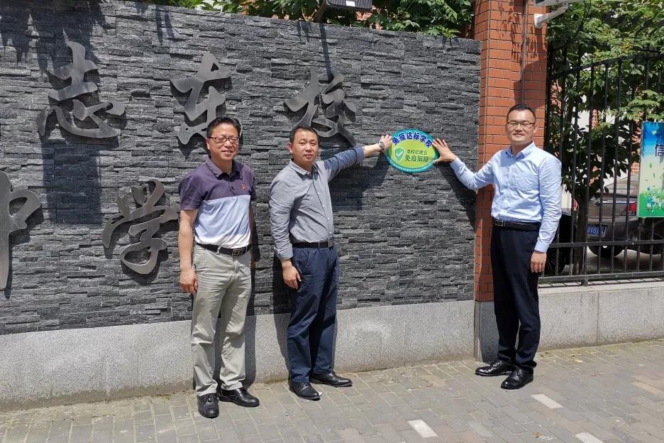 當天下午,平涼路街道和區教育局相關負責人一行來到存志東校,共同為學校頒發“免疫達標”標牌。