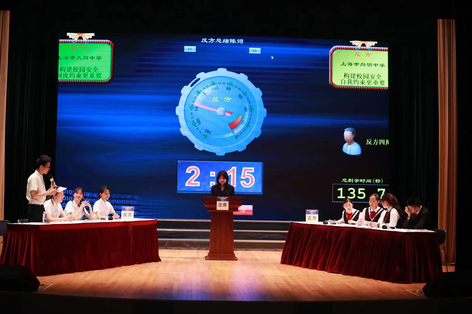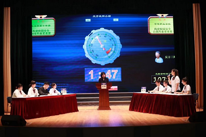 在預賽(上)中,圍繞“構建校園安全制度約束更重要”(正方)和“構建校園安全自我約束更重要”(反方),來自大同中學、上海市第八中學、上海市第十中學分別對戰上海市向明中學、格致中學、中華職業學校,辯手們唇槍舌戰,針鋒相對,他們敏捷的思維、出色的口才,展現了新一代青少年們積極向上的昂揚風貌。經過三場激烈的比賽,最終大同中學、上海市第八中學、上海市第十中學獲勝,順利進入下一輪比賽。