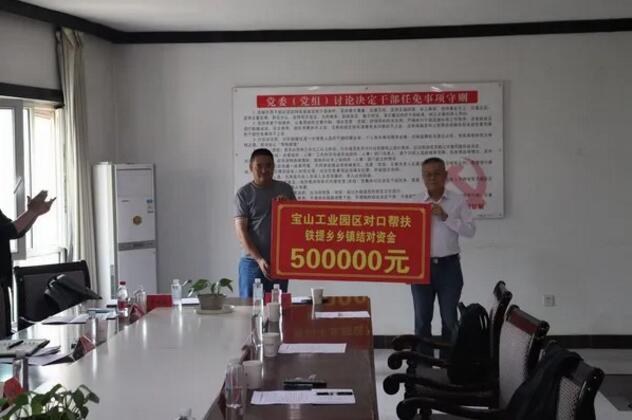 會上,鐵提鄉負責人向寶山工業園區代表團一行的到來表示熱烈歡迎,對寶山工業園區給予的大力支持和無私援助表示衷心感謝,并介紹了鄉基本情況及對口支援項目建設情況。隨后,寶山工業園區向鐵提鄉捐贈鄉鎮結對幫扶資金50萬元。