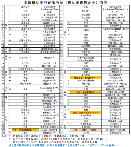 超過預約時間仍未到達預約地點領取號碼的,預約信息作廢。除60周歲以上人員、軍警人員、外籍人員等無法通過手機注冊認證的特殊人員外,其他單位、個人未經預約將無法在交警總隊車管所辦理小型車、摩托車注冊登記,可選擇至本市其他符合號牌種類和車型要求的機動車登記服務站辦理新車上牌,服務站地址如下: