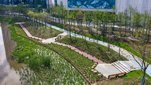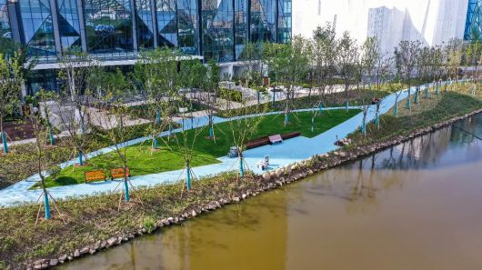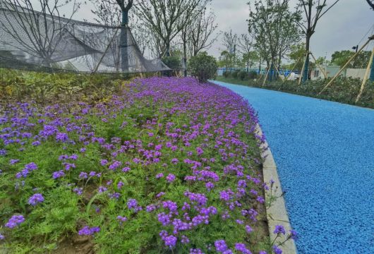 據介紹,濱河步道兩側種植了櫸樹、墨西哥落羽杉、烏桕等喬木,還在林下種植了波斯菊、硫華菊、火焰衛矛等特色地被。不同于其他步道,秋漣河濱河步道充分利用了豐富多彩的植物資源,在兩側種植各類春花秋色植物,營造河道周圍四季有花的場景, 使整個濱河步道集綠化與美化為一體, 創造一個四季有景、層次豐富的沿河景觀。