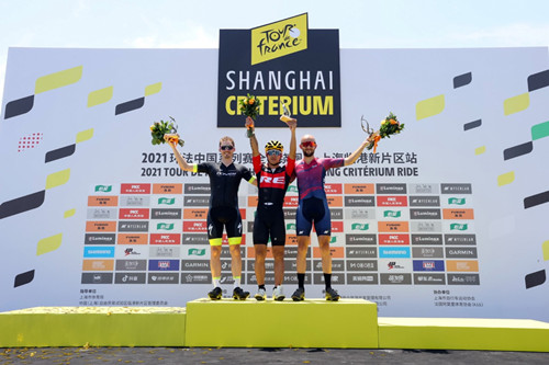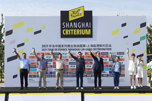 5月30日,2021環法中國系列賽全民繞圈賽·上海臨港新片區站正式開賽,中國(上海)自由貿易試驗區臨港新片區黨工委委員、管委會專職副主任吳杰,上海海事大學黨委副書記、副校長李志鵬,上海市體育局競賽處副處長張文中,上海港城開發(集團)有限公司副總經理金瑋琦,上海艾德韋宣體育發展有限公司總經理周琦,上海市自行車運動協會會長助理夏云等出席發槍儀式,共同為比賽啟幕。