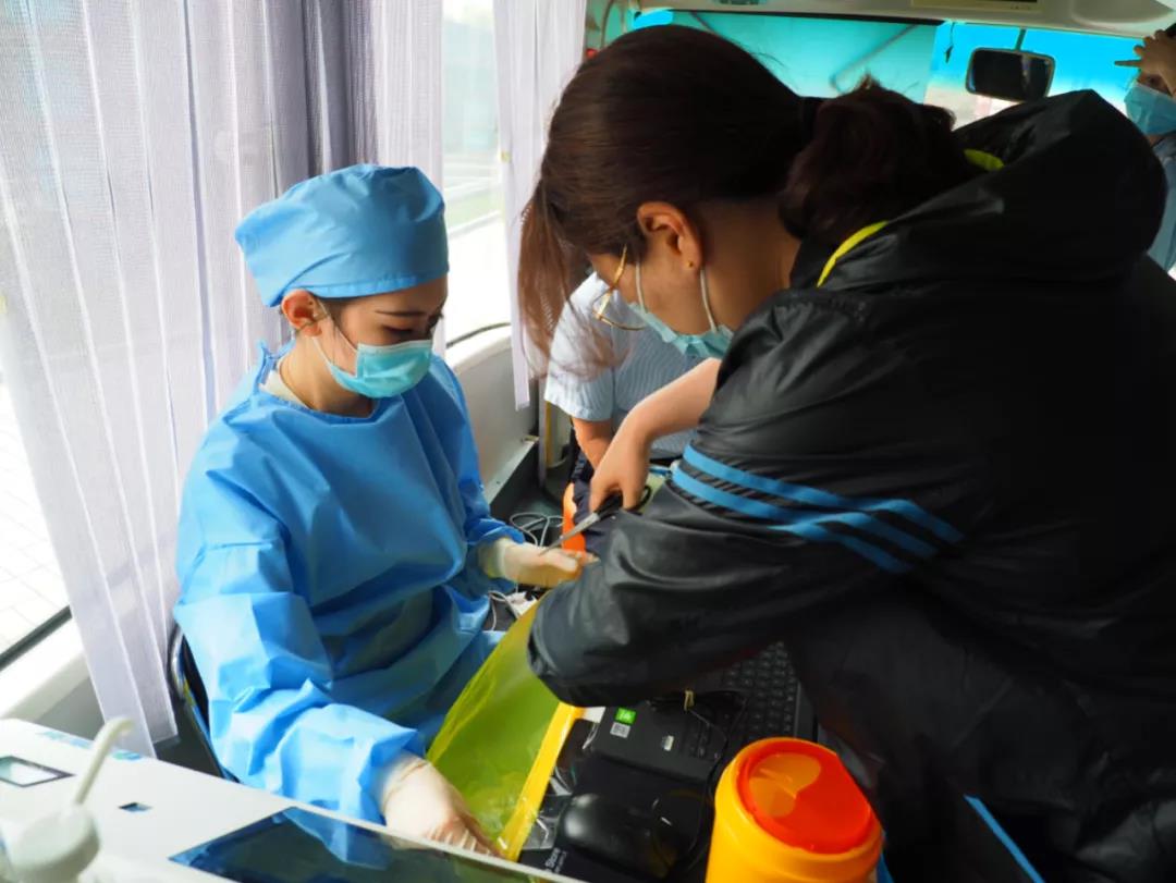 “早飯吃過了嗎?今天身體沒有不舒服哦,打完疫苗要多喝水,早點休息!苯臃N流動車上,宋麗卡仔細耐心地進行接種前詢問,雖然喉嚨有點沙啞,但是她的聲音十分有力!霸谲嚿喜槐仍诮臃N點,空間、人員都極其有限,我們接種的時候就要格外細心,寧可多說多問兩句,確保整個接種過程不出任何偏差!泵看慰吹阶约荷磉叺男”錆u漸空了,她的心情就飛揚起來,“多打一針就說明我們離全民免疫的目標又近了一小步!
