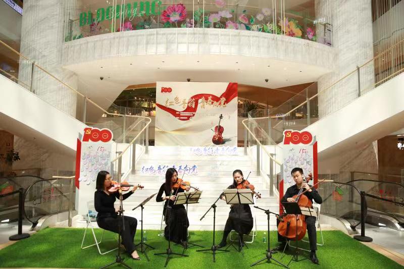 悠揚的提琴拉響一首首中國傳統曲目,西洋樂器全新演繹紅色經典。繼四月“小小音符,青春向黨”音樂會后,華潤時代廣場3樓中庭再次響起陣陣古樸典雅的弦樂聲,這是“紅色音符,青春向黨”沙龍音樂會的現場。這場由濰坊新村街道九六廣場黨總支、上海華潤時代廣場黨支部、濰坊新村街道團工委、華潤(上海)有限公司團支部精心策劃,原石四重奏樂隊傾情演奏的紅色專場音樂會在5月30日下午如約而至。