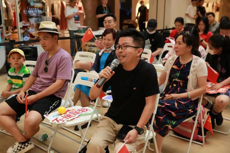 活動現場報名前來的觀眾大多是來自九六廣場黨總支、華潤時代廣場黨支部以及街道轄區內的黨員、團員們。大家在入場時,在音符紙上寫下了對黨的表白貼到了現場的表白墻上;不僅如此,音樂會期間,大家手揮小紅旗,跟隨著樂手的演奏,共同沉浸在熟悉的旋律中。而在每首曲子的演出間隙,現場觀眾更是亮出自己的黨員身份并積極參與互動,向迎來百歲華誕的黨送上自己最真摯的祝福。