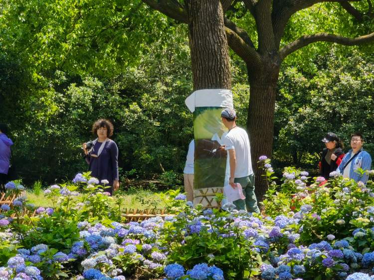2018年,公園邀請美術學院的藝術家走進公園,首次嘗試了樹體彩繪,引來大批游客前來打卡。今年的八仙花展,園方再次邀請中國美術學院、魯迅美術學院等專業藝術院校的藝術家團隊創作樹體彩繪,為八仙花展注入特色和趣味。與此前一次的創作方式和觀賞效果不同,此次升級版的樹體彩繪有透視感,將藝術與自然環境完美融合。