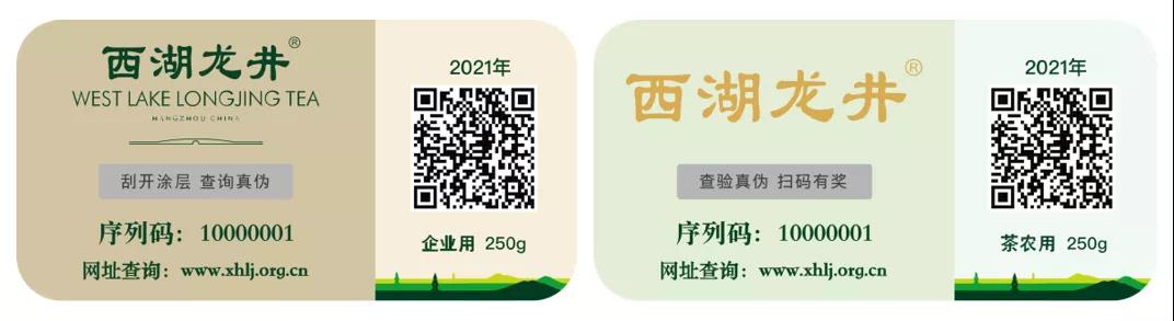 西湖龍井茶產地證明標識是用以證明西湖龍井茶原產地屬性的標識,分為證明標N(茶農用)和證明標Q(茶企用),內容包含“西湖龍井”字樣、規格、年份、序列碼、查詢用二維碼、查詢網址等信息,消費者可通過掃描二維碼的方式進行查詢驗證;也可以刮開標簽上的防偽圖層,登錄官方網站,輸入防偽碼進行驗證。