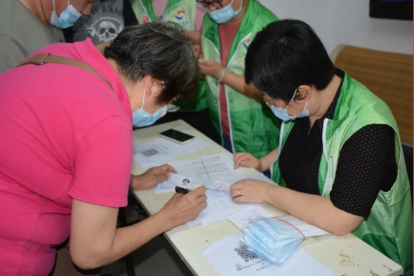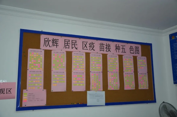 據欣輝居民區黨總支書記劉云芳介紹,居民區共有1866戶3455人,居委會用五色圖的形式,來標注小區居民疫苗接種情況,目前已有超70%的居民完成了新冠疫苗接種。