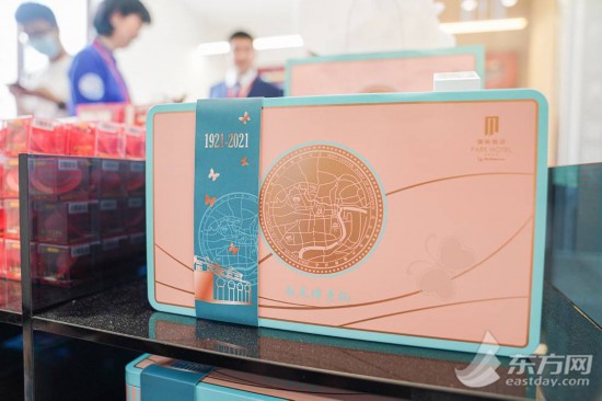 國際飯店的蝴蝶酥是上海最有名的伴手禮之一。在“一大文創”商店,市民游客就能把這款“網紅”帶回家。精致的國際飯店伴手禮盒,配以黨的誕生地——中共一大會址和國際飯店大地原點元素腰封,將伴手禮理念傳承與紅色文化相結合。