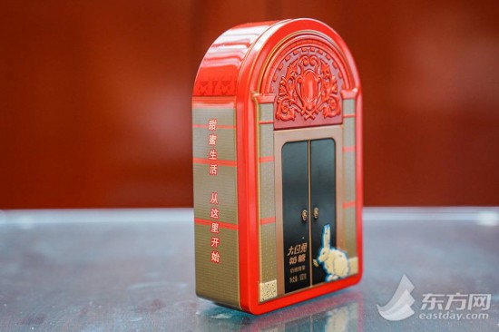 定制款大白兔奶糖禮盒,正如它的主題語——“甜蜜生活,從這里開始”,主創團隊希望大家吃著甜甜的糖,感受生活的美好。值得一提的是,大白兔奶糖的糖紙也經過精心設計,大白兔坐在石庫門建筑中,糖紙兩端的兔子手握一顆紅心。