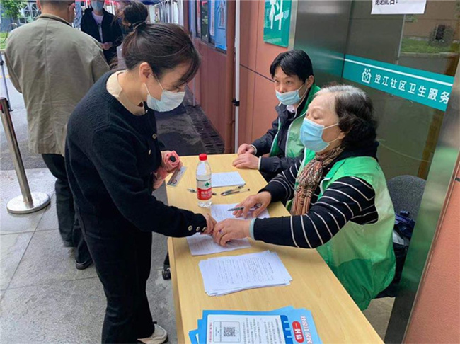 在控江路街道107弄黨總支的號召下,99弄、107弄小區的退休黨員們都紛紛行動起來擔當志愿者工作,每天兩次輪流值守小區門口,負責向小區居民宣傳登記疫苗接種。