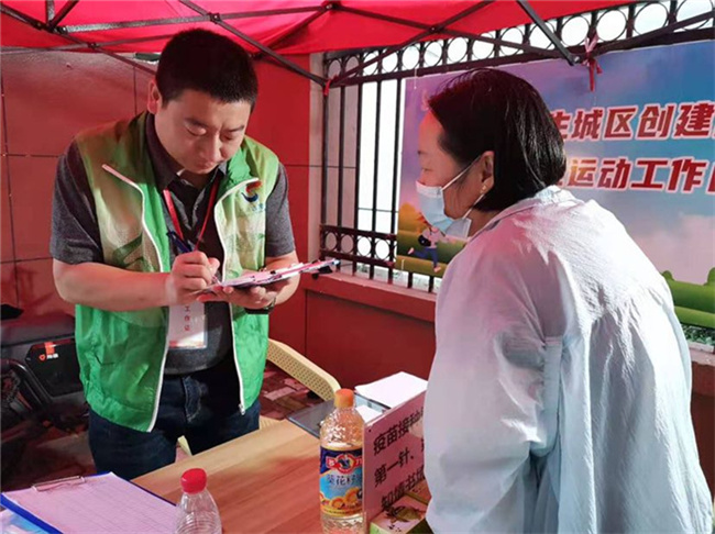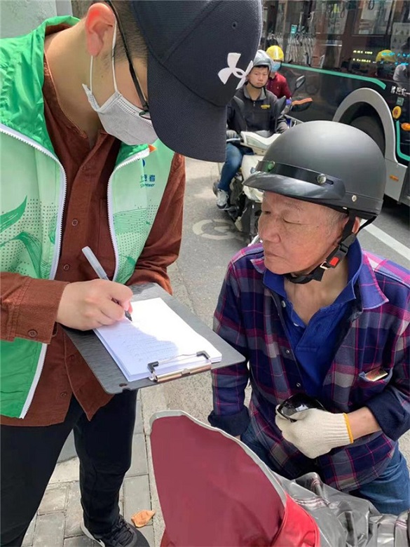 志愿者中年齡最小的是社區工作者王翠蓮二十歲的兒子,周末難得回家也加入到疫苗宣傳和信息登記的服務中。